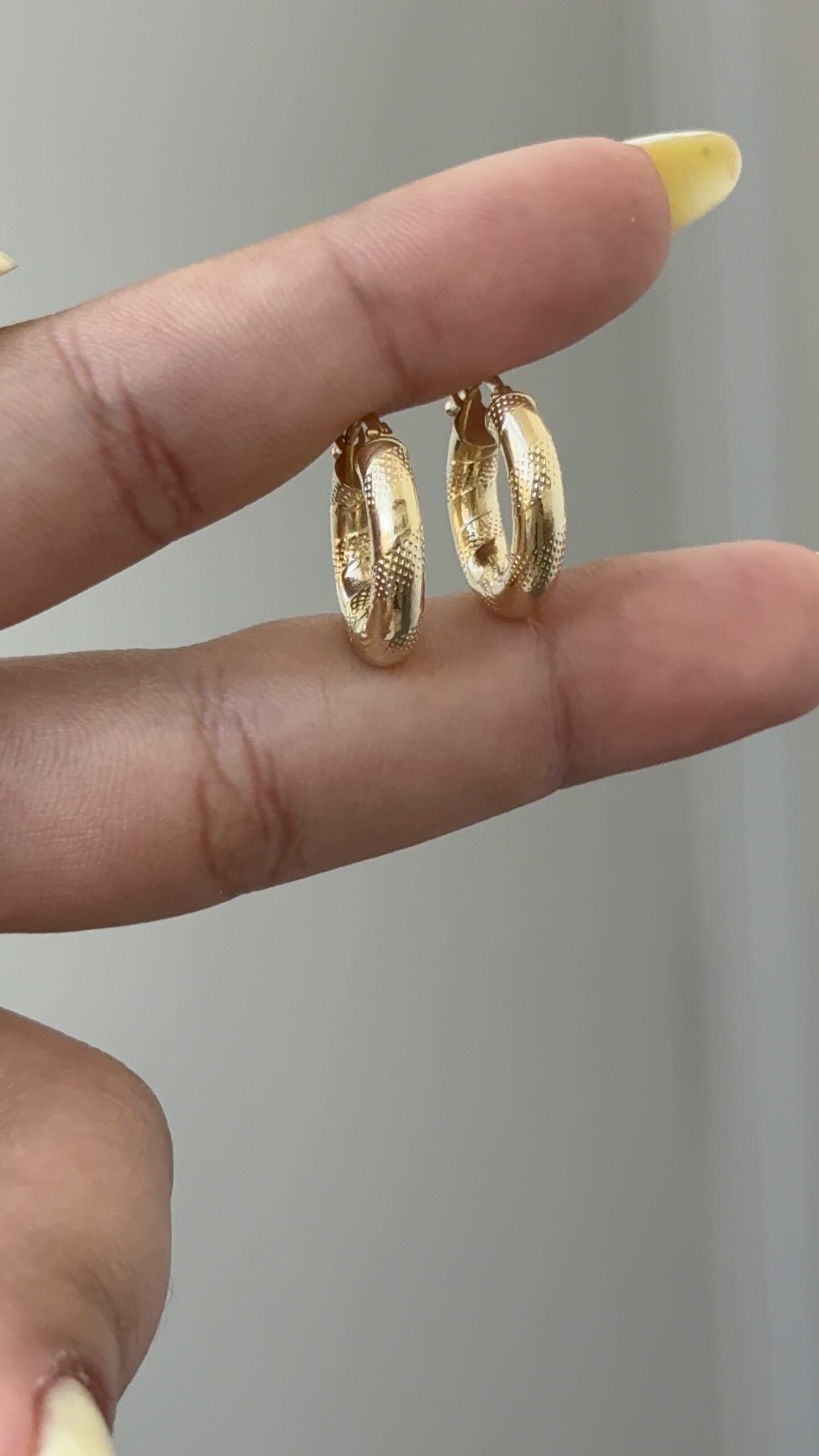 These medium-sized 18K gold hoop earrings feature a unique and elegant design that enhances any look. Their radiant finish and perfect size make them ideal for everyday wear or special occasions. A timeless piece that blends modern style with classic elegance.